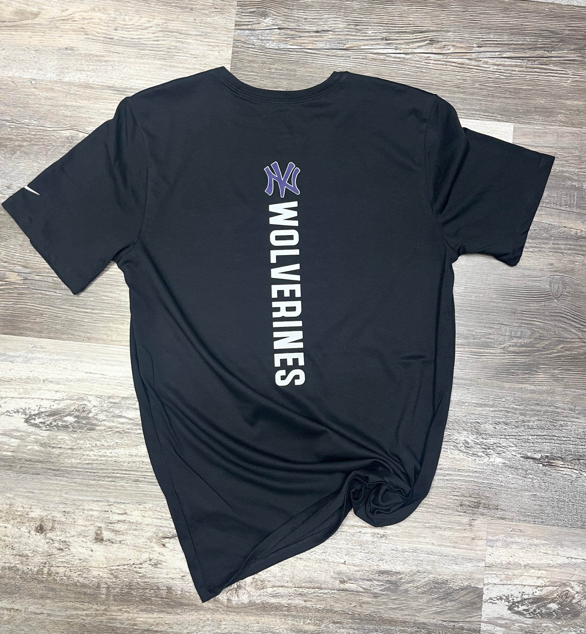 - Contrast heat transfer Swoosh logo on left sleeve