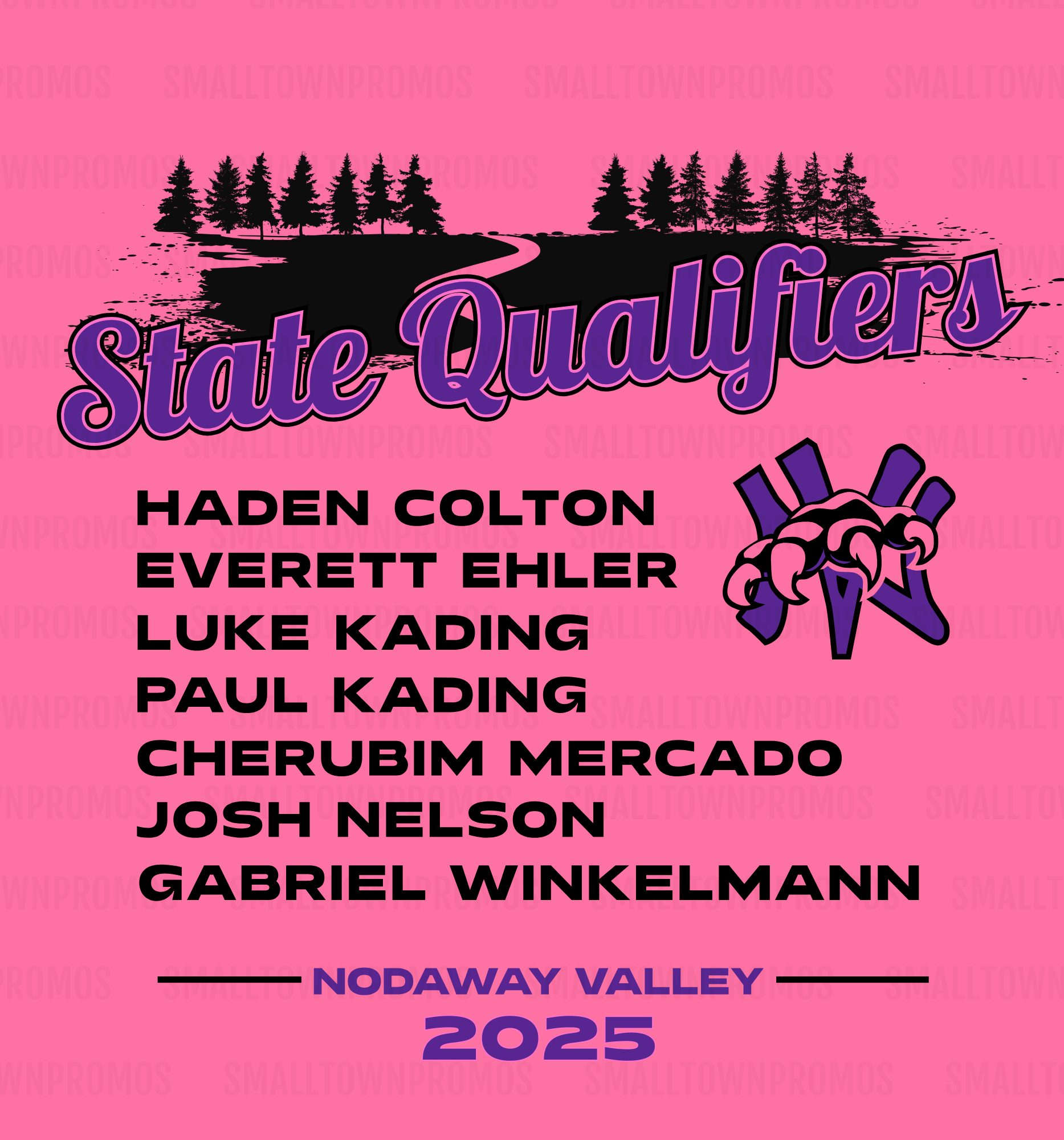 Select "free local pickup" at checkout to have your item(s) delivered to the Nodaway Valley High School for pickup. An email will be sent when your order is ready for pickup.