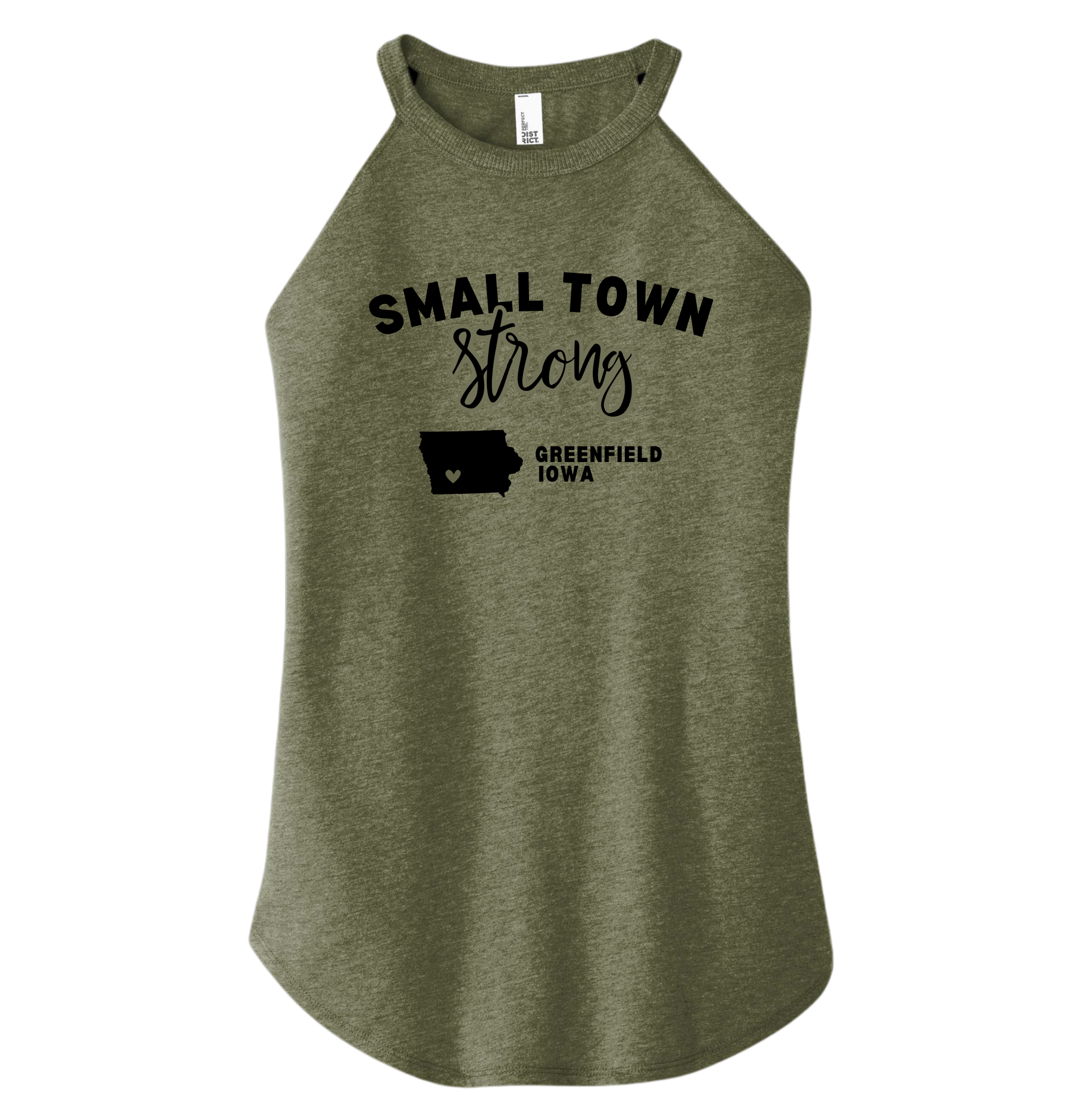 "Small Town Strong Greenfield, Iowa" High Neck Ladies Tank Top